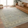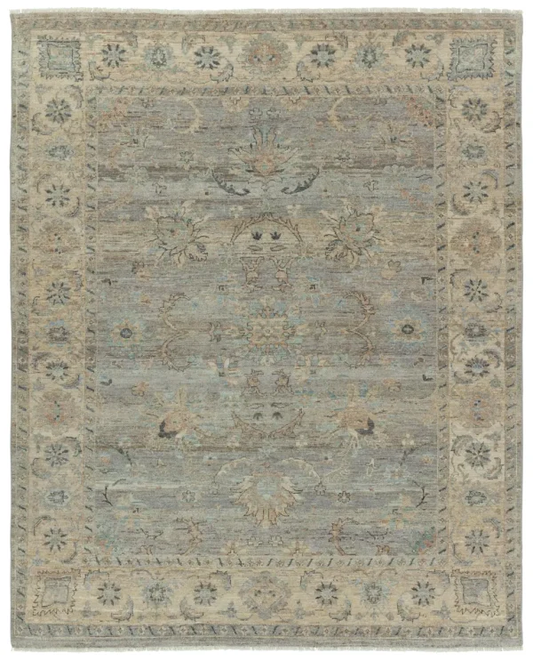 This collection features heirloom-quality designs of muted and uniquely updated Old World patterns. Boasting a beautifully washed medallion motif with ornate and fine-lined details. The area rug boasts a beautiful medallion motif with floral details. The tan, blue, taupe, gray, and cream tones are grounding and neutral, perfect for providing an inviting and serene accent in any space. This hand-knotted wool rug anchors high-traffic living areas with a fresh take on vintage style.