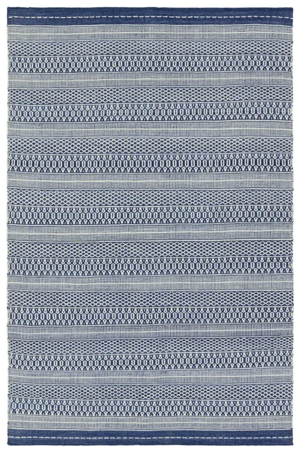 The handwoven PNRDIR collection features a soft feel and relaxed, versatile style. The Lenna area rug showcases a blend of navy and cream with geometric tribal pattern to lend to contemporary interest and the perfect dose of pattern. Crafted of 100% polyester yarn, this durable and textured rug brings warmth and inviting appeal to indoor and outdoor spaces alike. The performance-driven make fits into homes with pets and kids, while withstanding high traffic areas like patios, laundry rooms, kitchens, living rooms, entryways, or halls.