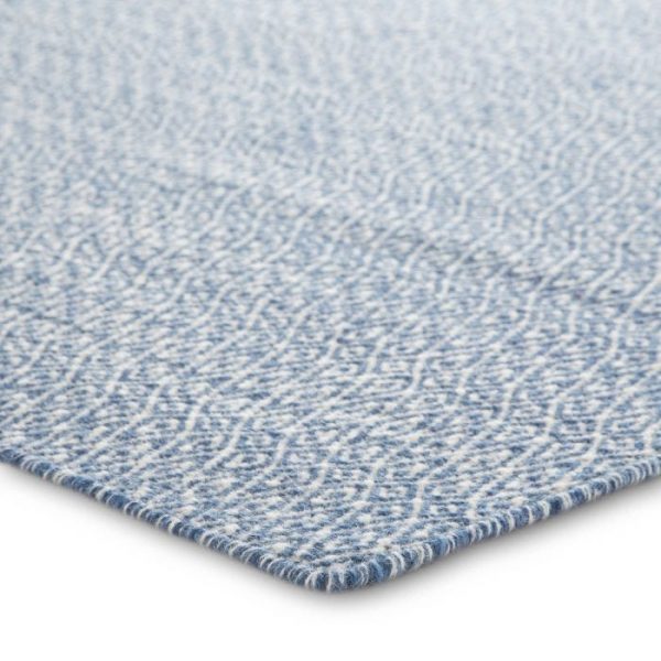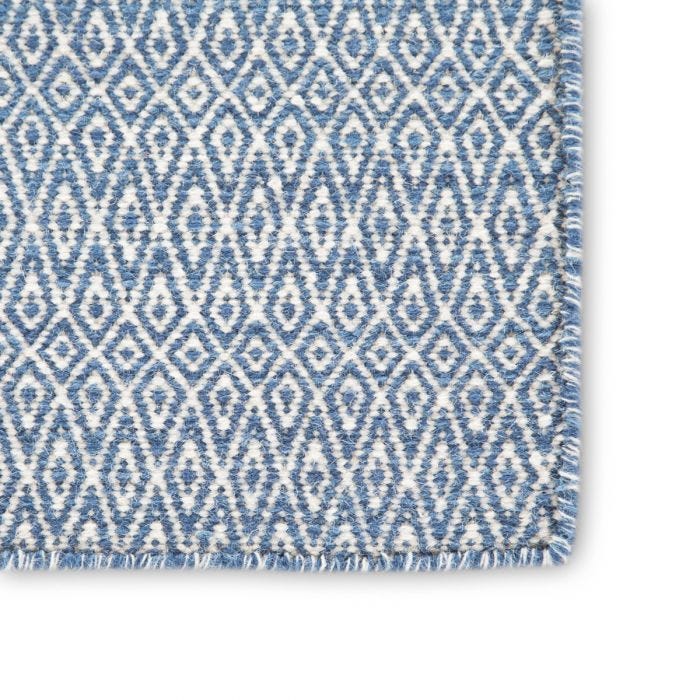 The flatweave rug shows off a captivating diamond trellis pattern in a casually elegant colorway of ivory and blue. This low-profile accent is durable in a 100% wool construction, ideal for kitchens, dining spaces, and well-trafficked areas.