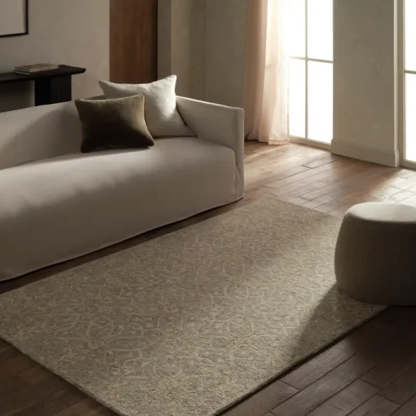 The hand-tufted PRODIR collection offers a warm blend of transitional colorways and timeless designs. Crafted from durable wool, its looped pile provides a plush, cushioned feel underfoot while remaining breathable. The design showcases an elegant oriental pattern that combines classic appeal with enduring quality, inviting comfort into any space.