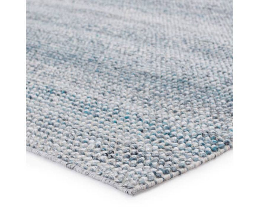 Contemporary and versatile, the eco-friendly offering a sophisticated distressed solid design to high-traffic areas and outdoor spaces. The area rug delivers a fresh accent to patios, kitchens, and dining rooms with its ultra-durable PET yarn handwoven construction. The striated tones of blue and white lend a bright and airy look to any home.