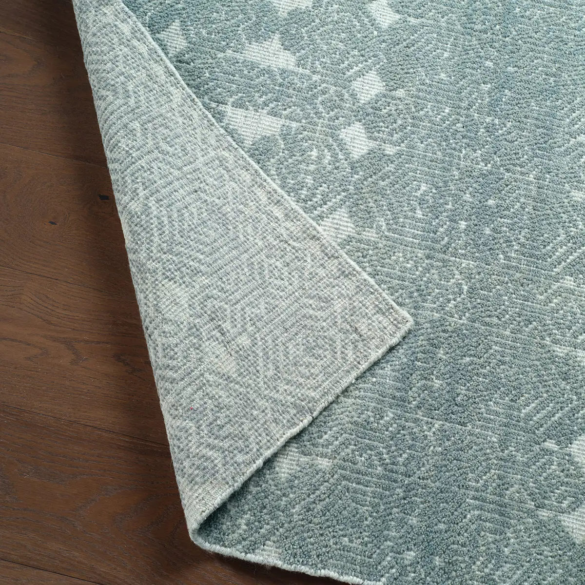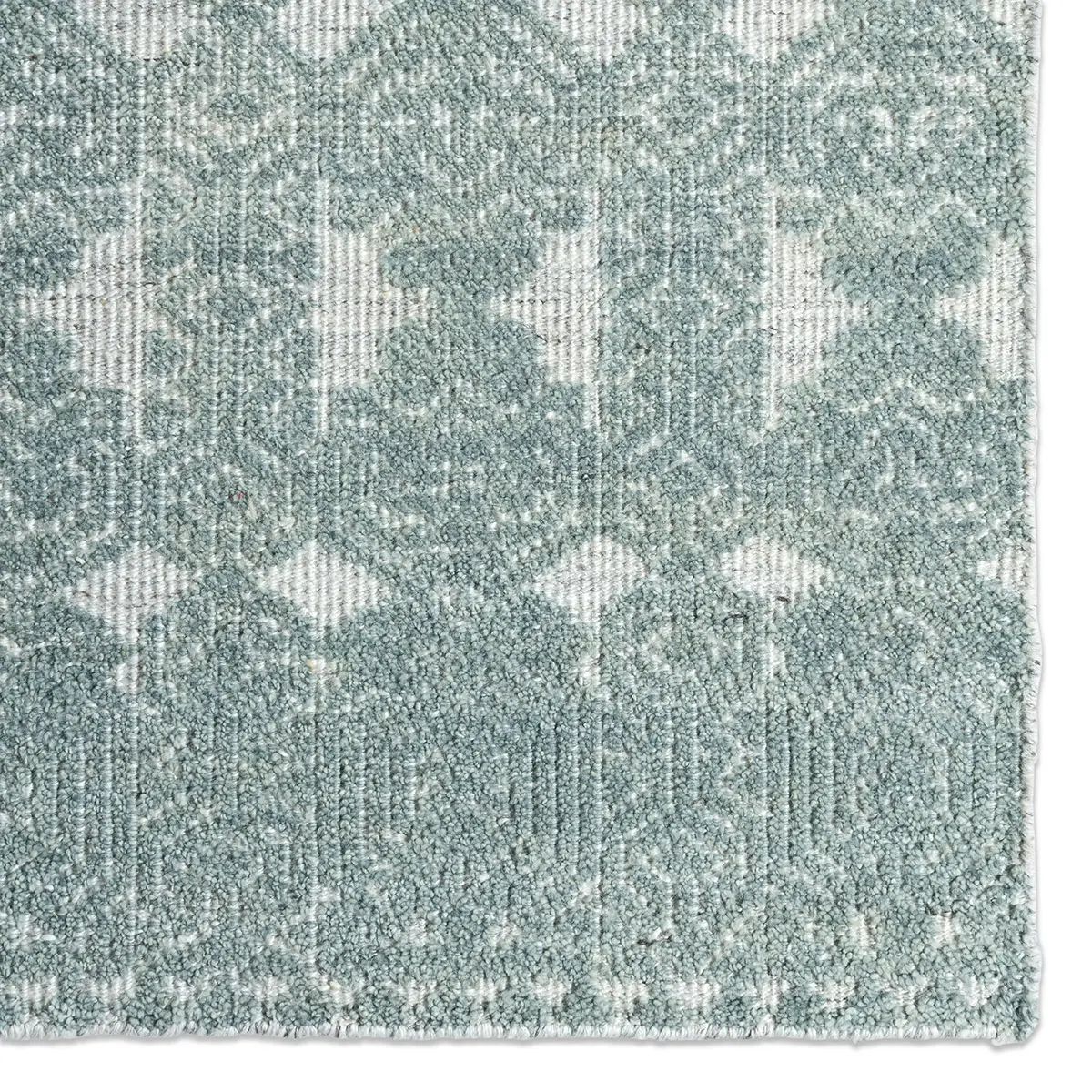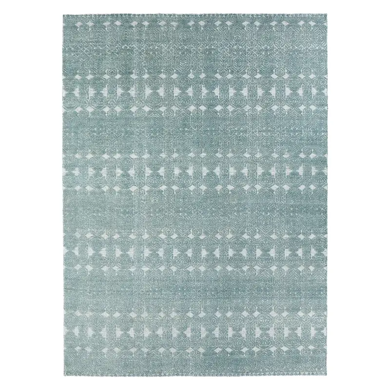 The captivating REIDIR collection introduces detail-rich design and inviting carved pile to contemporary and traditional homes alike. The hand-knotted rug showcases an intricate, vintage medallion motif. Grounded by a light gray and ivory blend, the textured, heathered teal pattern makes a stunning statement on this wool and viscose rug.