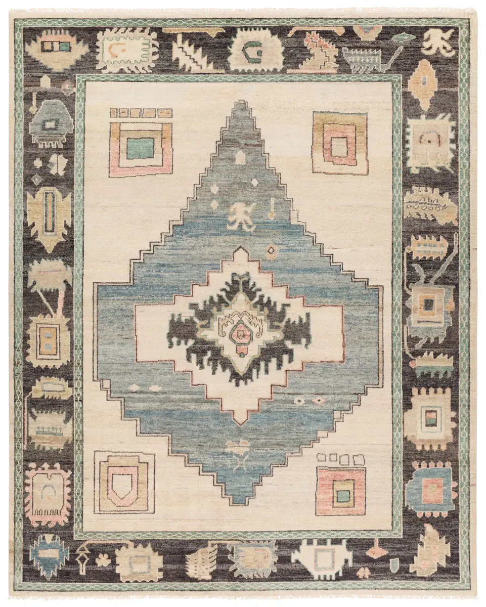 The eye-catching and boldly colored REZDIR collection is powerful and full of life. Inspired by exotic Oushak designs, it’s rich with color and design bravado. Soft and strong, dense, and lush with an impressive knot count per-square-inch. The rug stuns with striking design of an updated medallion center that recalls the artistry of antique Oushak rugs. Hand carved for a lightly distressed appearance; the rug represents the next generation of living well.