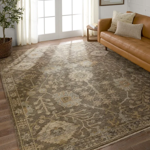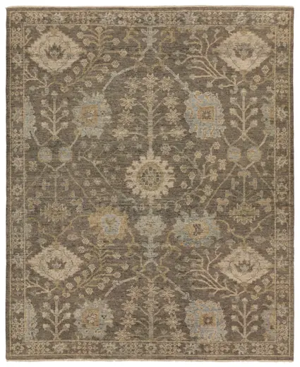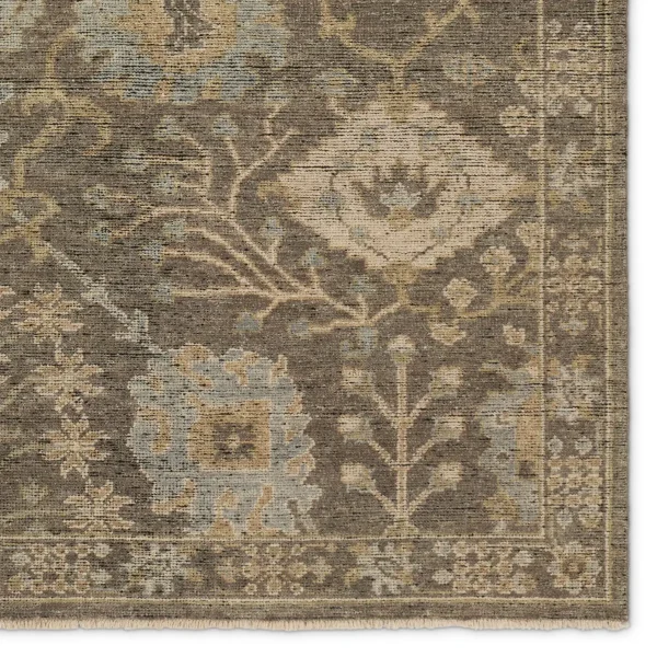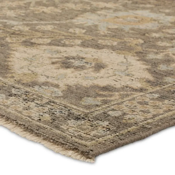 The RHADIR collection features heirloom-quality designs of stunningly abrashed Old World patterns. The area rug boasts a beautifully washed medallion motif with a decorative border. The gray tones are accented with cream, black, brown, and green hues for added depth and intrigue. This durable wool handknot anchors living spaces with a fresh take on vintage style.