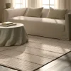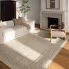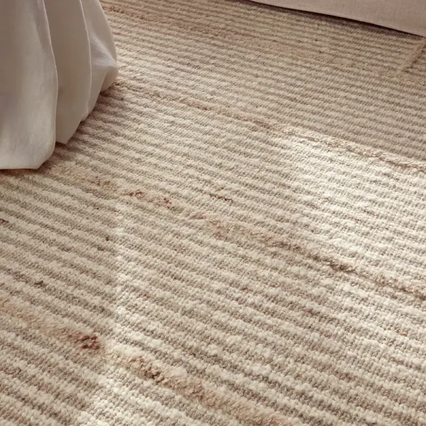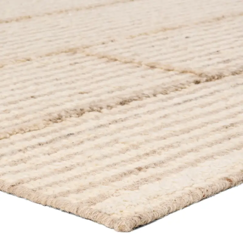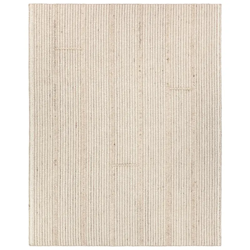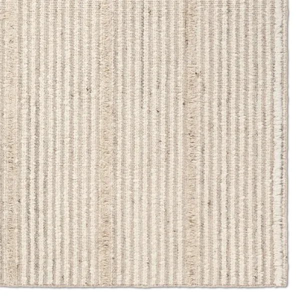 Earthy tan, beige, and brown tones come together in a mesmerizing linear design, infusing this rug with contemporary elegance. Handwoven from a luxe wool pile, its luminous sheen highlights every intricate detail.