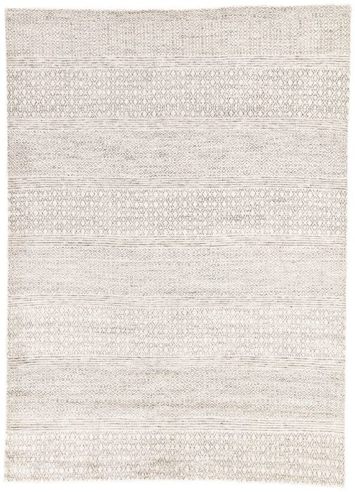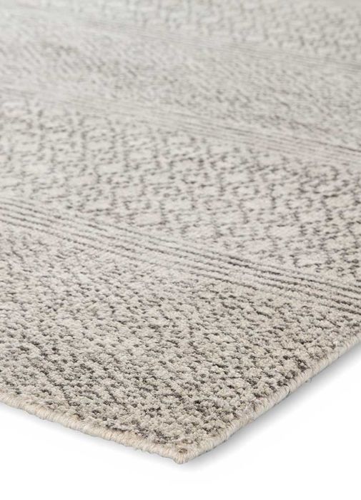 Offering intricate and delicately designed global patterns to the modern home. Small-scale Geometric motifs create a captivating banded design on the artistically distressed area rug. In a light neutral colorway of white and gray, this durable hand-knotted wool accent blends a timeless craft with contemporary charm.