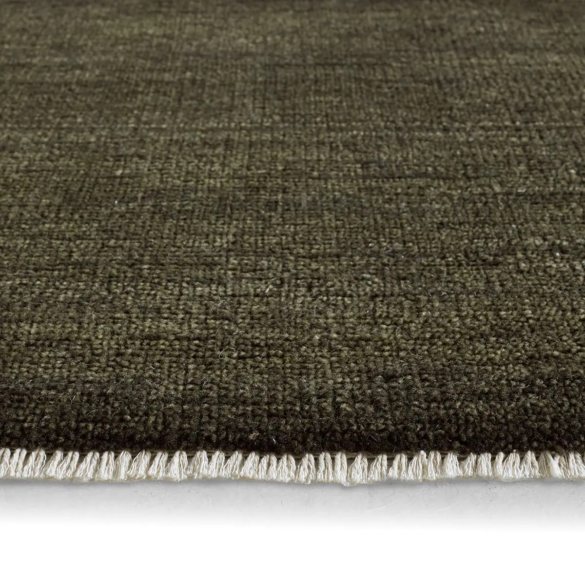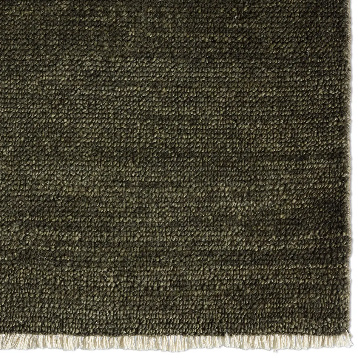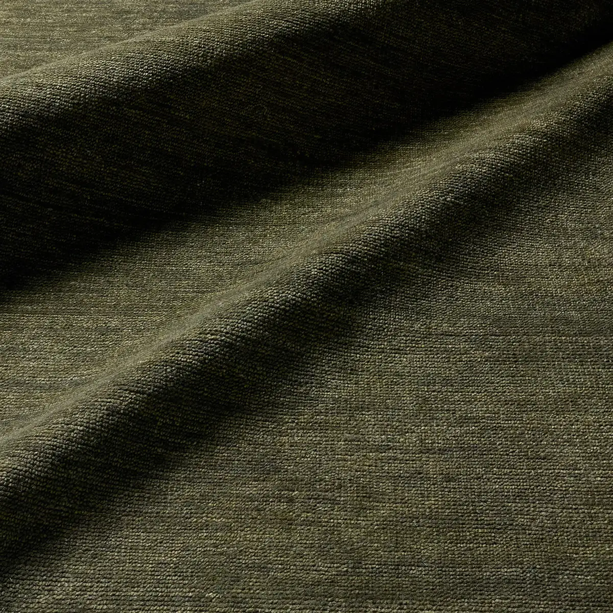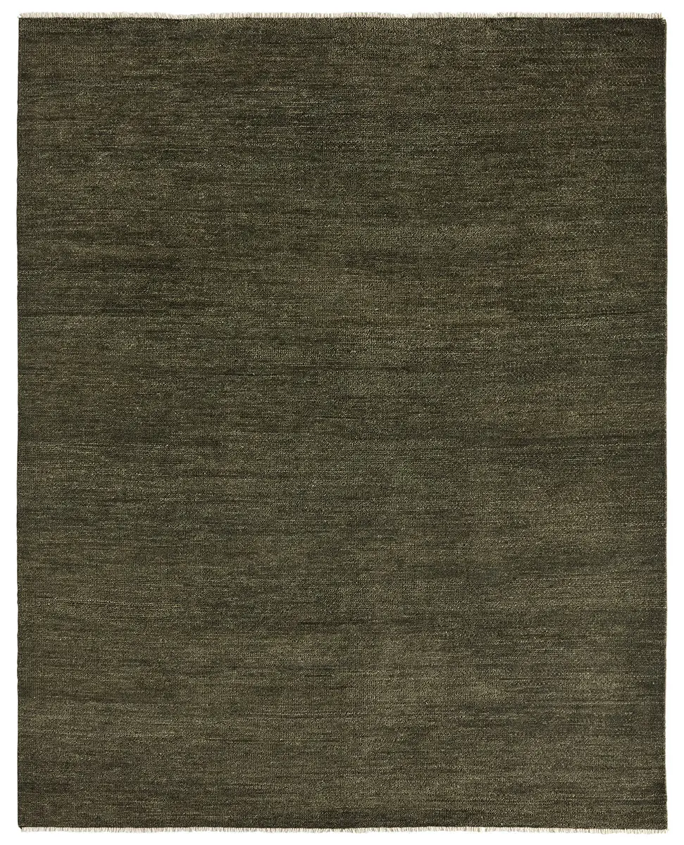 The sophisticated SAGDIR collection lends balance and a relaxed, grounding vibe to modern interiors. The area rug grounds the room with its solid, subtly striated design in a strong olive palette. Crafted from multi-washed wool yarns, each piece offers a remarkably soft, silky feel—blending understated luxury with enduring quality.