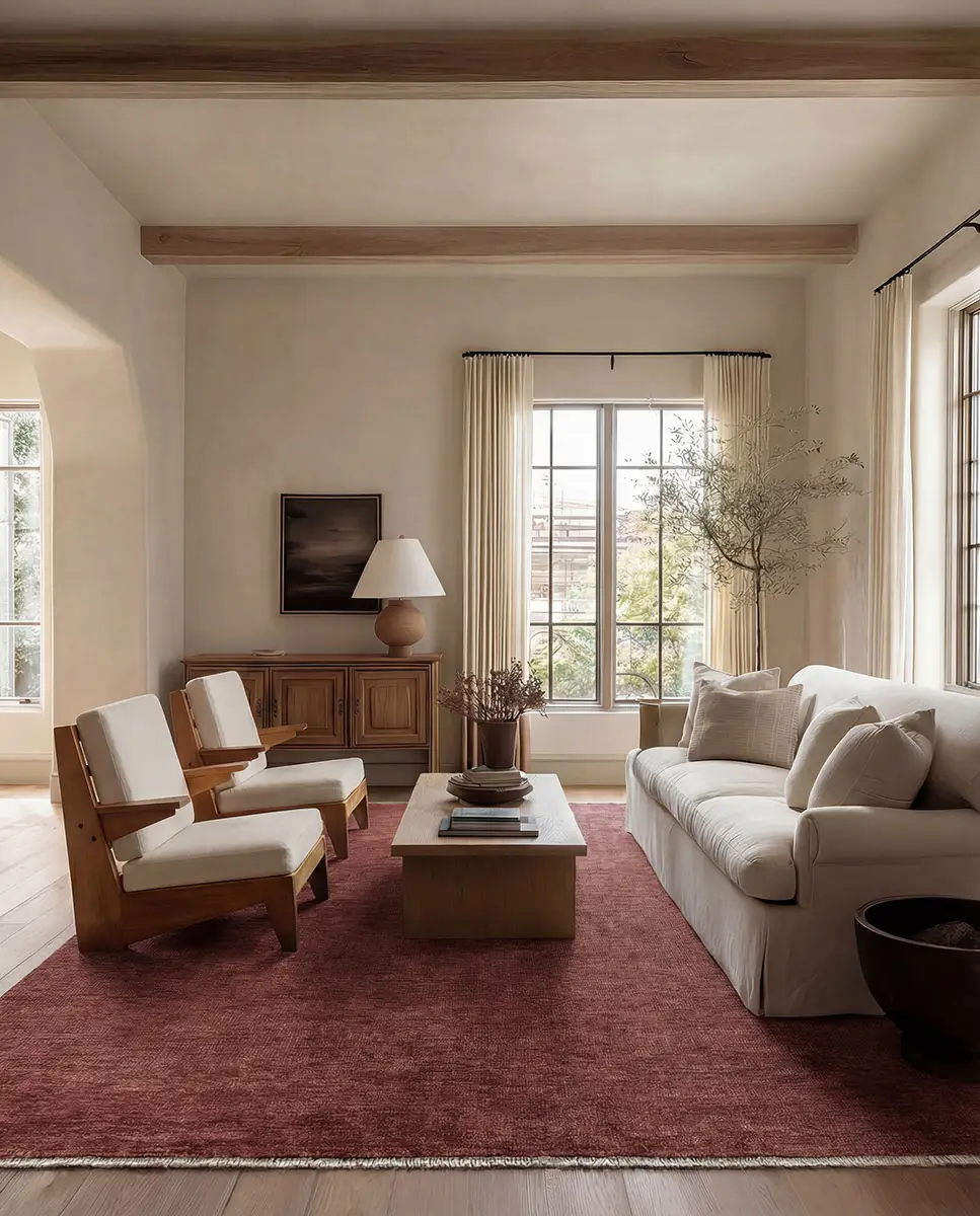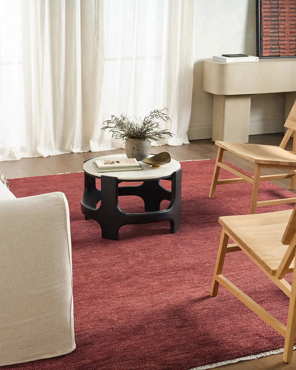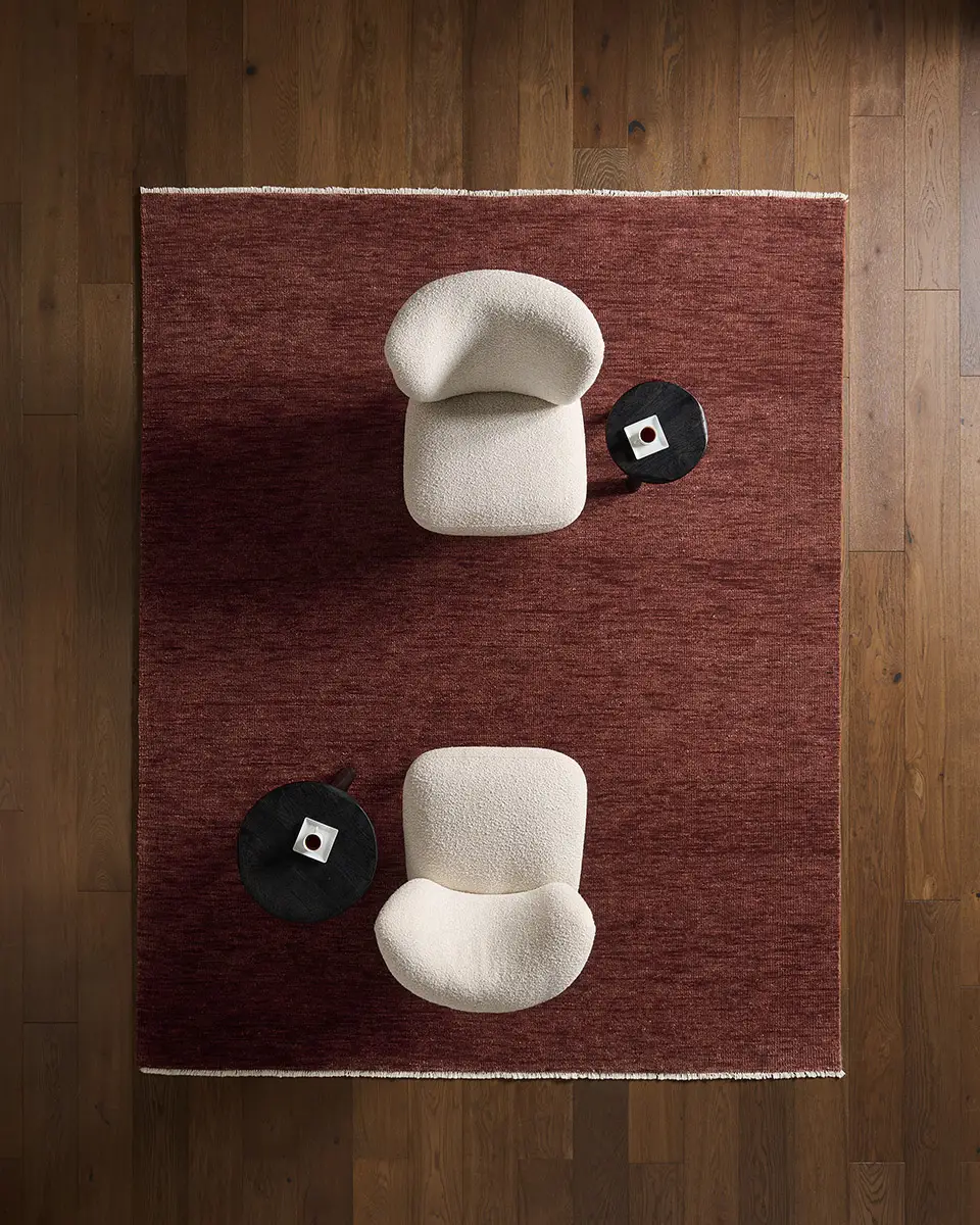 The sophisticated SAGDIR collection brings a sense of grounding to the room, where rich russet and terracotta tones unfold. Handknotted by skilled artisans from multi-washed wool yarns, it offers an exceptionally soft, almost silky hand with a natural luster that elevates its depth of color. This thoughtful process enhances both the softness and durability of the wool, creating a rug that feels refined yet relaxed.