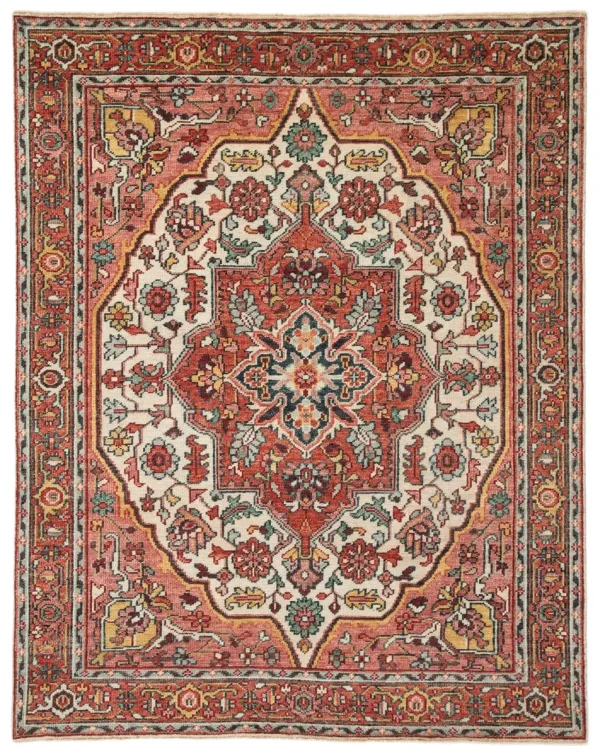 The SLNDIR collection is punctuated by vibrant hues and intricate details, bringing a bold, transitional look to any home. The feminine and fun rug makes a vivid impression with an ornate center medallion and accent floral design. Hand knotted of wool for timeless durability, this elegant accent’s rosy color scheme is sure to enliven any bohemian living space.