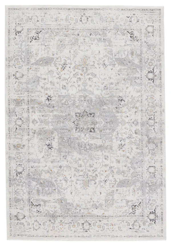 Inspired by both classic motifs and contemporary art, the SOCDIR collection features transitional designs in soft, calming colorways. The Werner area rug showcases a subtle tribal band design in serene, relaxed hues gray, ivory, and subtle hints of gold. Made to withstand heavy foot traffic and lived-in spaces, this power-loomed polypropylene rug boasts texture-rich high-low pile.
