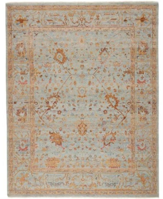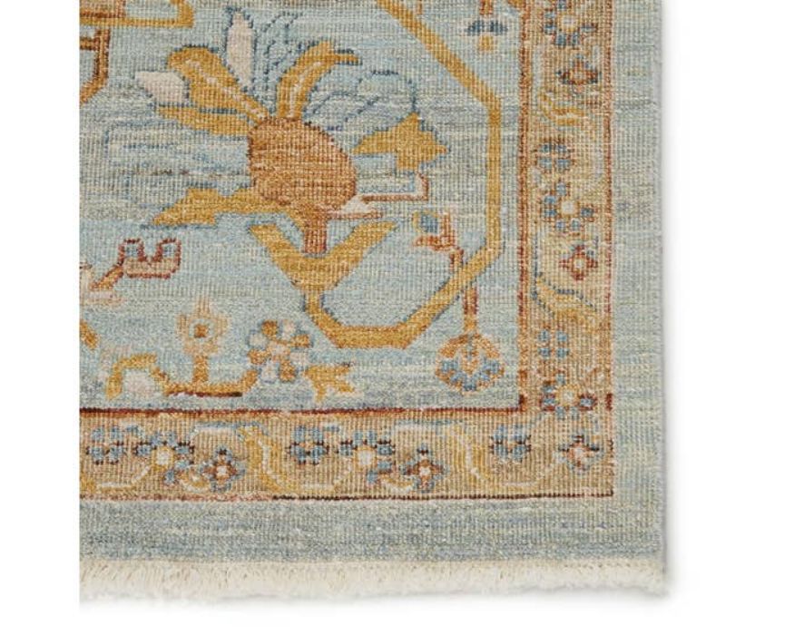 Whimsical colorways combine with the opulent detail of a traditional-inspired pattern–this collection represents nostalgia and progression, heritage and the contemporary. Light blue and gold details ground spaces with luxe appeal and an exceptional hand-knotted quality. Crafted of handspun Afghan wool, this artisan-made rug boasts an authentic, timeworn look.
