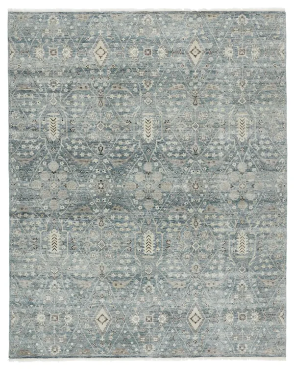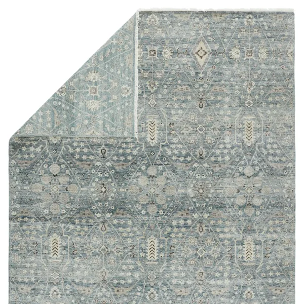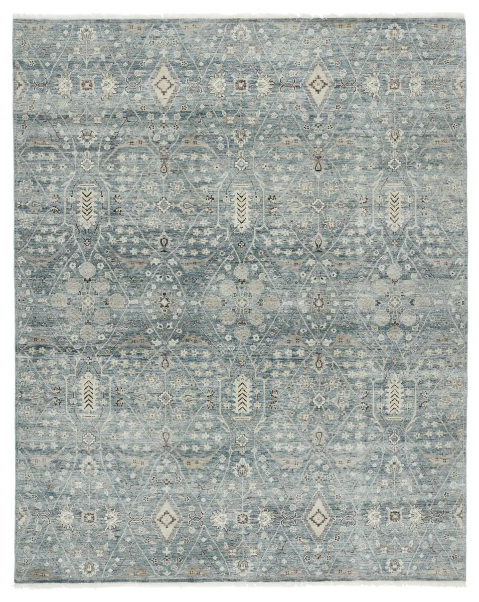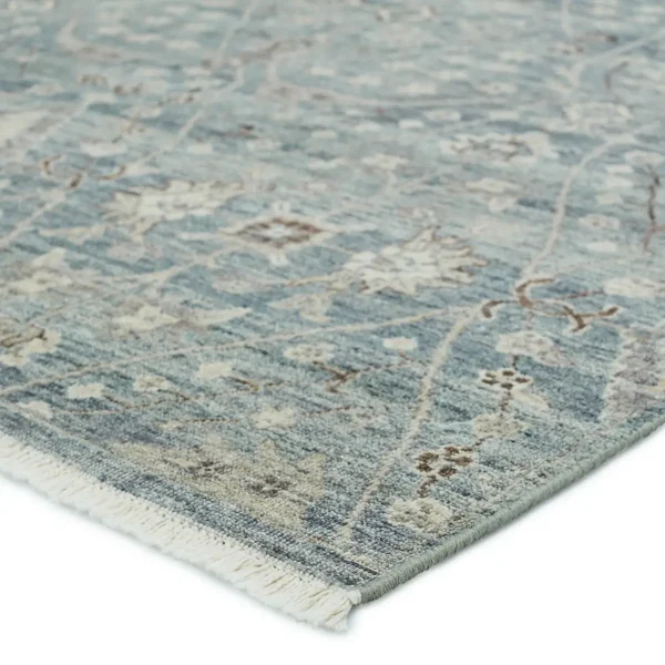 Whimsical colorways combine with the opulent detail of a traditional-inspired pattern–collection represents nostalgia and progression, heritage and the contemporary. The rug’s blue, cream, light gray, and rich brown details ground spaces with luxe appeal and an exceptional hand-knotted quality. Crafted of handspun wool, this artisan-made rug boasts an authentic, timeworn look.