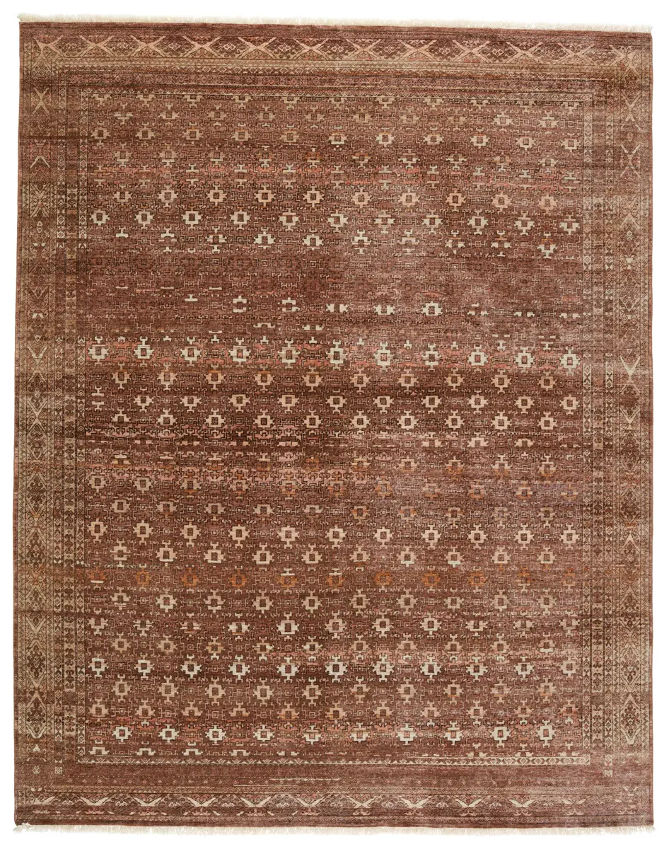 Whimsical colorways combine with the opulent detail of a traditional-inspired pattern–collection represents nostalgia and progression, heritage and the contemporary. The rug features a mini-medallion pattern and deep brown and cream colorway that grounds spaces with luxe appeal and an exceptional hand-knotted quality. Crafted of handspun wool, this artisan-made rug boasts an authentic, timeworn look. Made for optimum durability, this rug withstands high-trafficked spaces like halls, entryways, and living rooms.