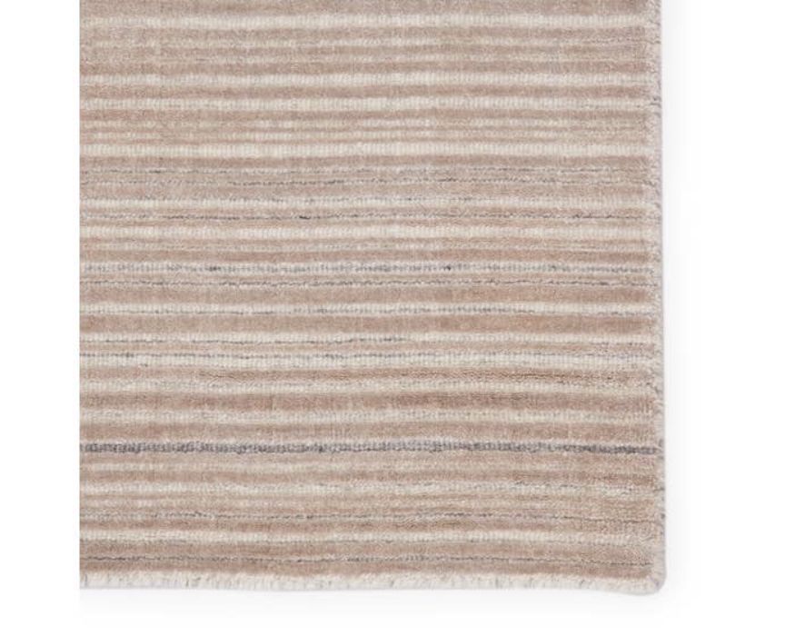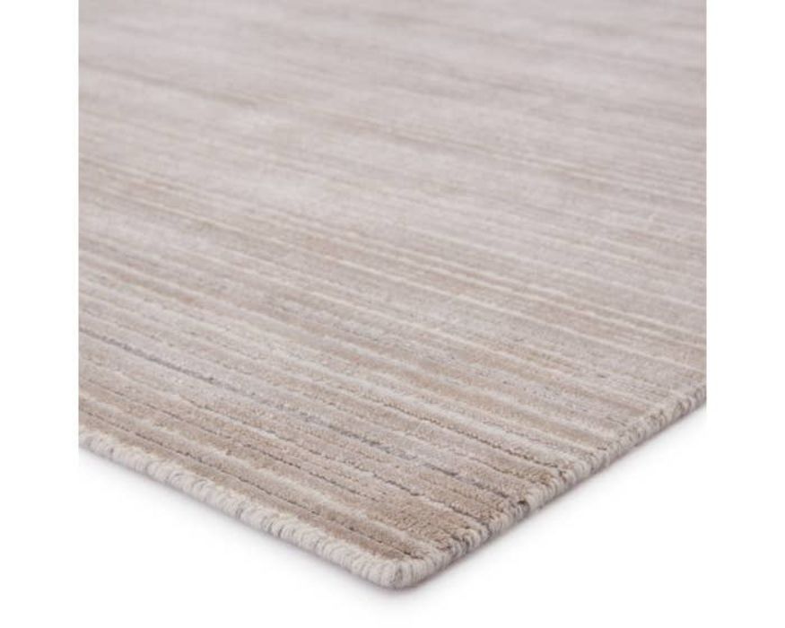 The easy-to-decorate, earthy tones of this collection prove that simplicity can sometimes be striking. This rug is hand loomed of durable wool and rayon made from bamboo for a sumptuous and inviting hand. The variation in the light taupe, ivory, and gray tones of this lustrous rug creates stunning depth and dimension with the help of subtle striation in the cut-and-looped pile.
