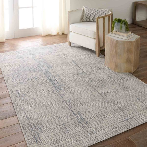 The SUDDIR collection showcases landscape-inspired abstracts that offer texture and elevated colorways to modern interiors. The area rug showcases a linear design in soothing tones of cream, blue, and gray. The durable yet soft polypropylene and polyester shrink creates a high-low pile that is easy to care for and clean. The livable construction of this rug complements any high-traffic area in the home, including bedrooms, living spaces, or hallways.