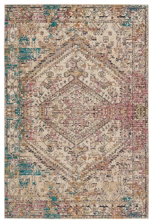Bringing to life an enchanting and truly captivating style, the SWODIR collection boasts whimsical color combinations that are vibrant and inspired by traditional Turkish textiles that have been aged in the sun for a faded and timeless look. The design features a tile design in hues of gold, blue, teal, pink, ivory, and charcoal gray. Crafted of soft, high-low polyester, this performance-driven rug is perfect for homes with pets and kids or as a durable accent in outdoor seating areas.