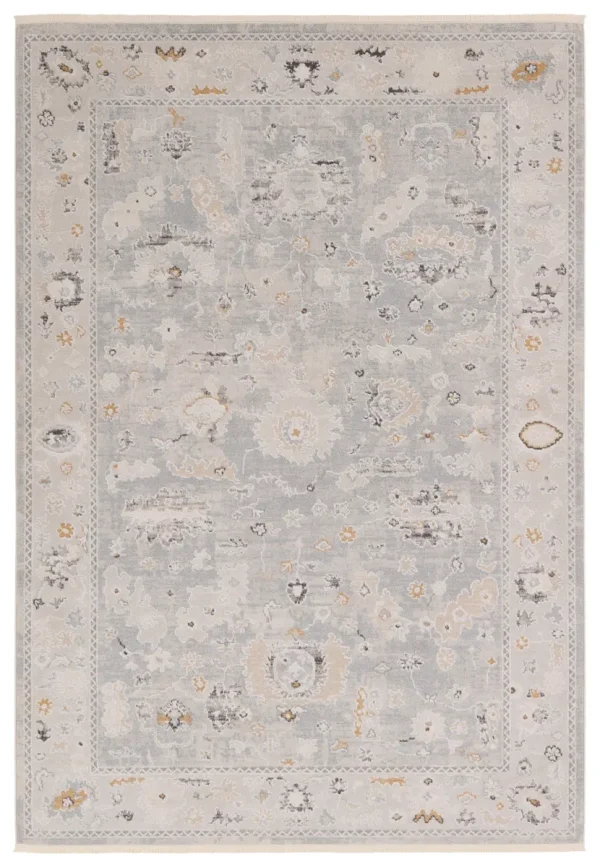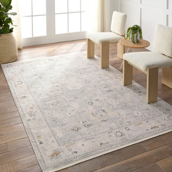 From ethereal abstract motifs to elegant scrolling florals, the THADIR collection boasts a soft, tonal touch that complements an array of interior styles. The traditional Oushak designs and thick border of the area rug pair effortlessly with the cool gray, cream, tan, and subtle blue colorway. Both water and stain-resistant, the high-low polyester and polypropylene fibers are easy to clean while maintaining a plush feel underfoot. This power loomed piece can endure high traffic areas, children, and pets, creating a perfect accent for any modern home.