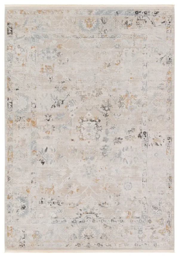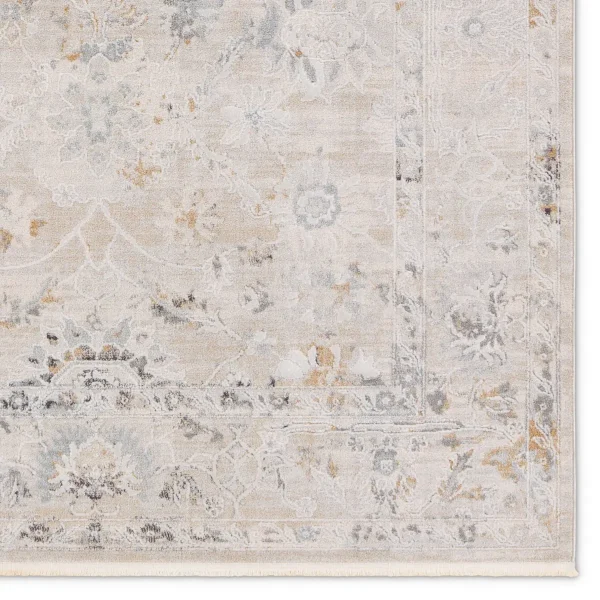 From ethereal abstract motifs to elegant scrolling florals, the THADIR collection boasts a soft, tonal touch that complements an array of interior styles. The traditional, floral medallion and thick border of the area rug pair effortlessly with the cool gray, cream, gold, slate, and dark gray colorway. Both water and stain-resistant, the high-low polyester and polypropylene fibers are easy to clean while maintaining a plush feel underfoot. This power loomed piece can endure high traffic areas, children, and pets, creating a perfect accent for any modern home.