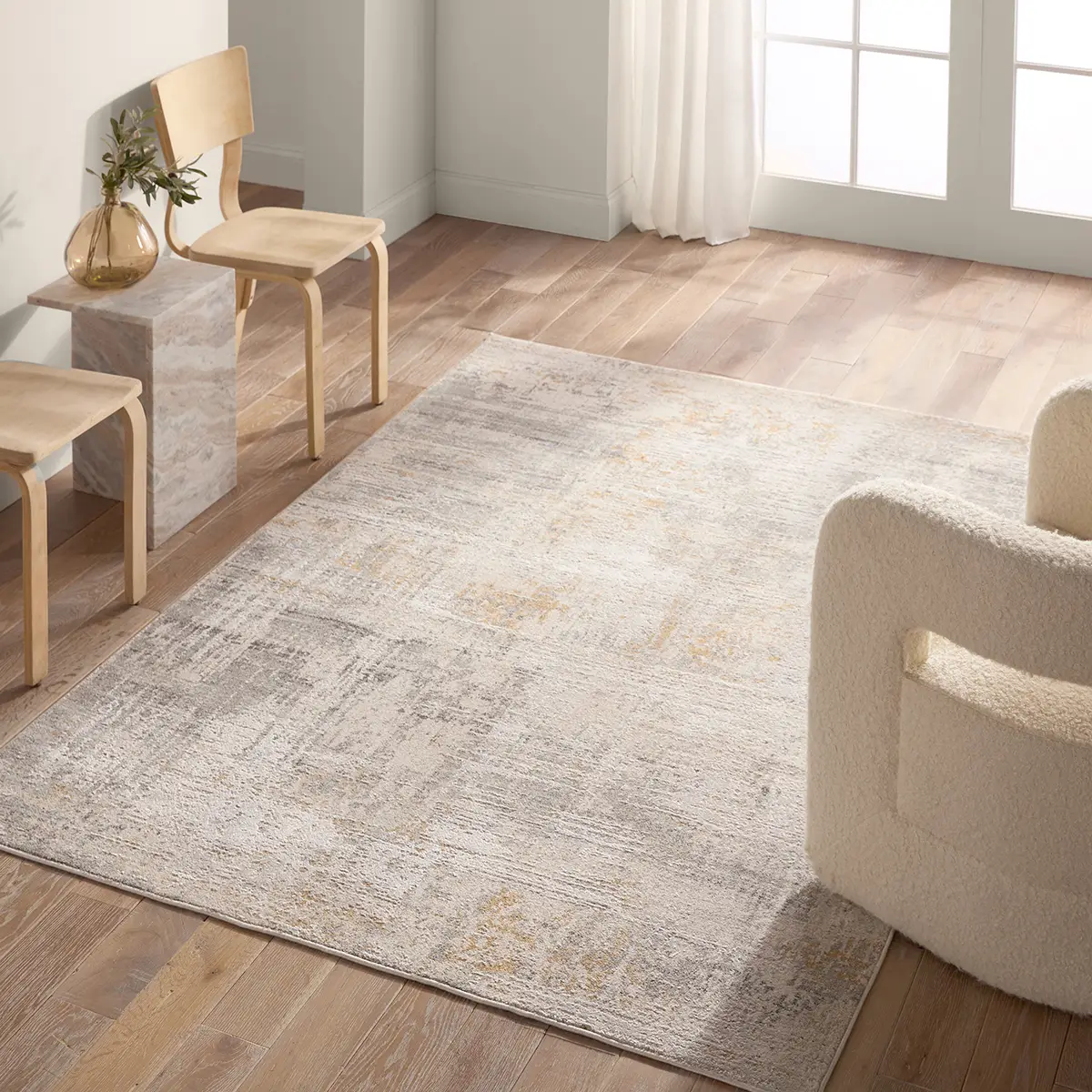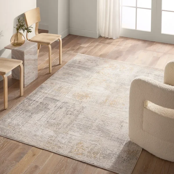 From ethereal abstract motifs to elegant scrolling florals, the THADIR collection boasts a soft, tonal touch that complements an array of interior styles. The distressed, abstract design of the area rug pairs effortlessly with the gray, cream, and tan colorway. Both water and stain-resistant, the high-low polyester and polypropylene fibers are easy to clean while maintaining a plush feel underfoot. This power loomed piece can endure high traffic areas, children, and pets, creating a perfect accent for any modern home.