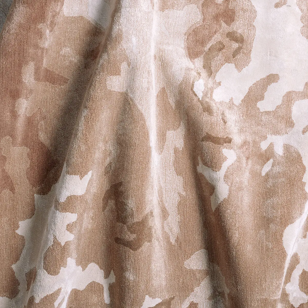 Crafted of silken viscose, the hand tufted TRDDIR collection lends a luxurious look and feel to modern homes. The stunning and elegant area rug boasts a fluid abstract design with a lustrous sheen. This plush rug features a warm color palette of varying shades of peach for a versatile complement in any contemporary space.
