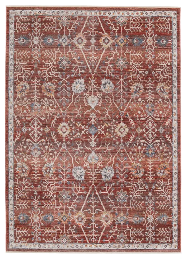 A complementary mix of vibrant and natural tones combine to create the effortlessly stylish TRRDIR collection. Space-dyed polyester lends a unique colorway and subtle, dimensional sheen to the stunningly detailed design. The eye-catching and detailed rug offers an ornate accent with an elegant medallion motif in mixed hues of red, blue, yellow, gray, ivory, and deep plum.