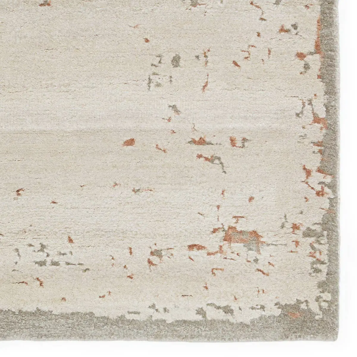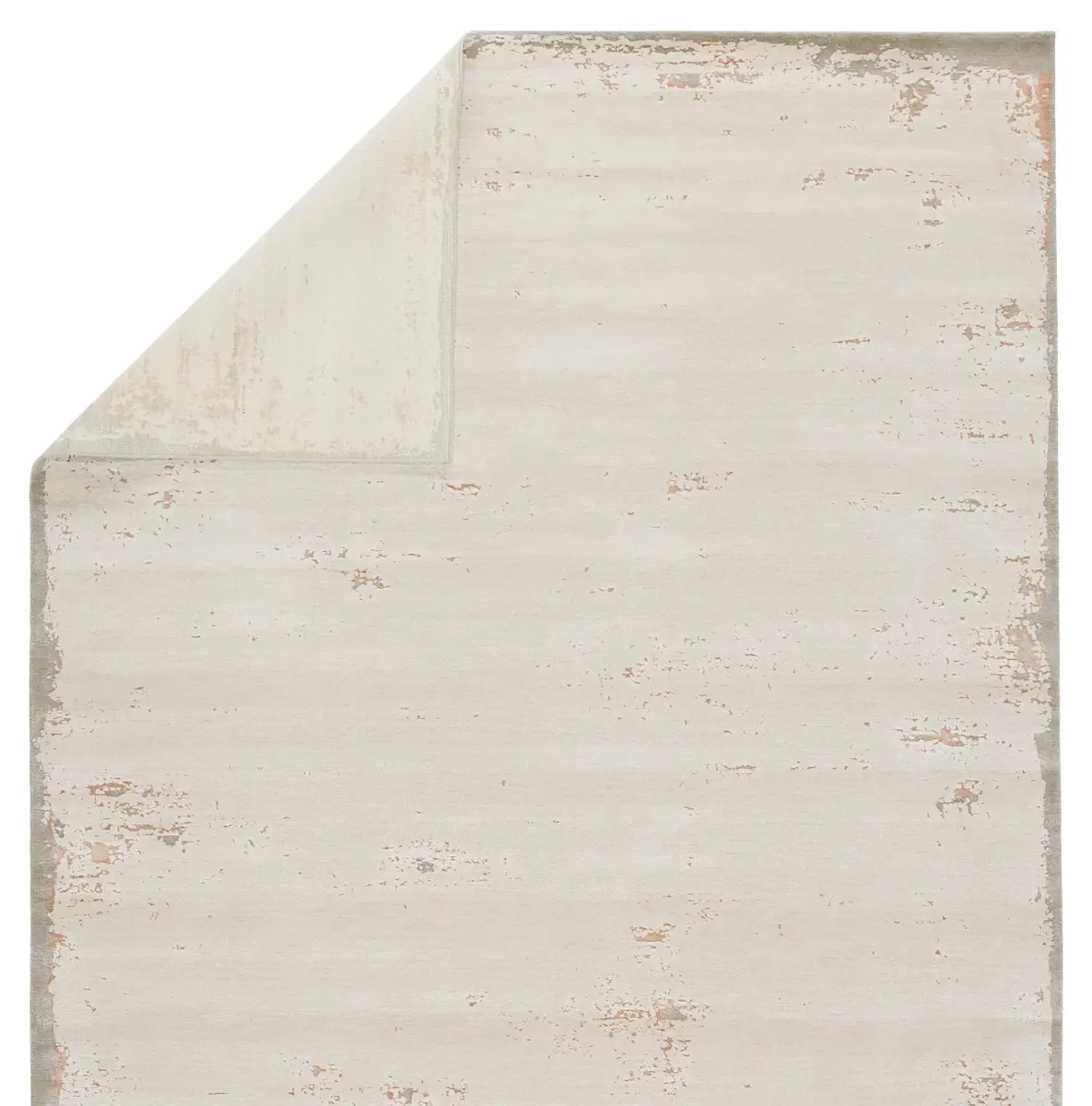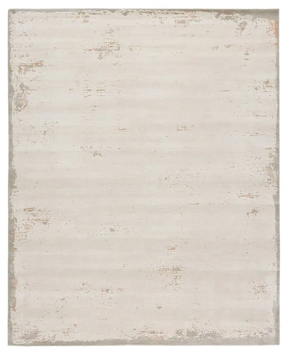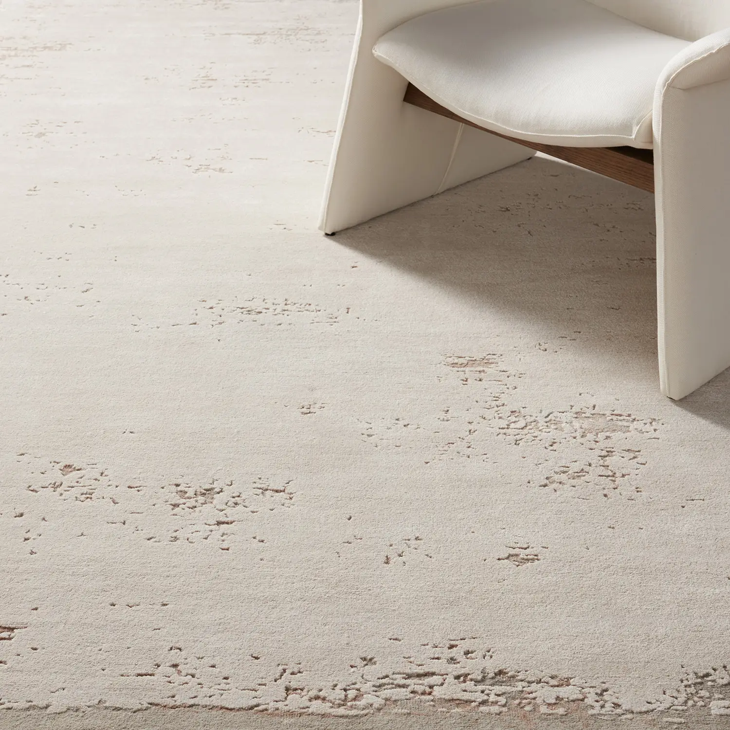 Inspired by the unrushed quality of the natural process, the UPKDIR collection features an assortment of grounding solid designs that are anything but basic. Rayon made from bamboo lends an inviting, silk-like texture and unique light-to-dark effect to the hand-knotted quality. The rug showcases a lustrous white color that is grounded by the naturally textured, beige and soft gray wool fibers, creating a distinct shine and matte combination.