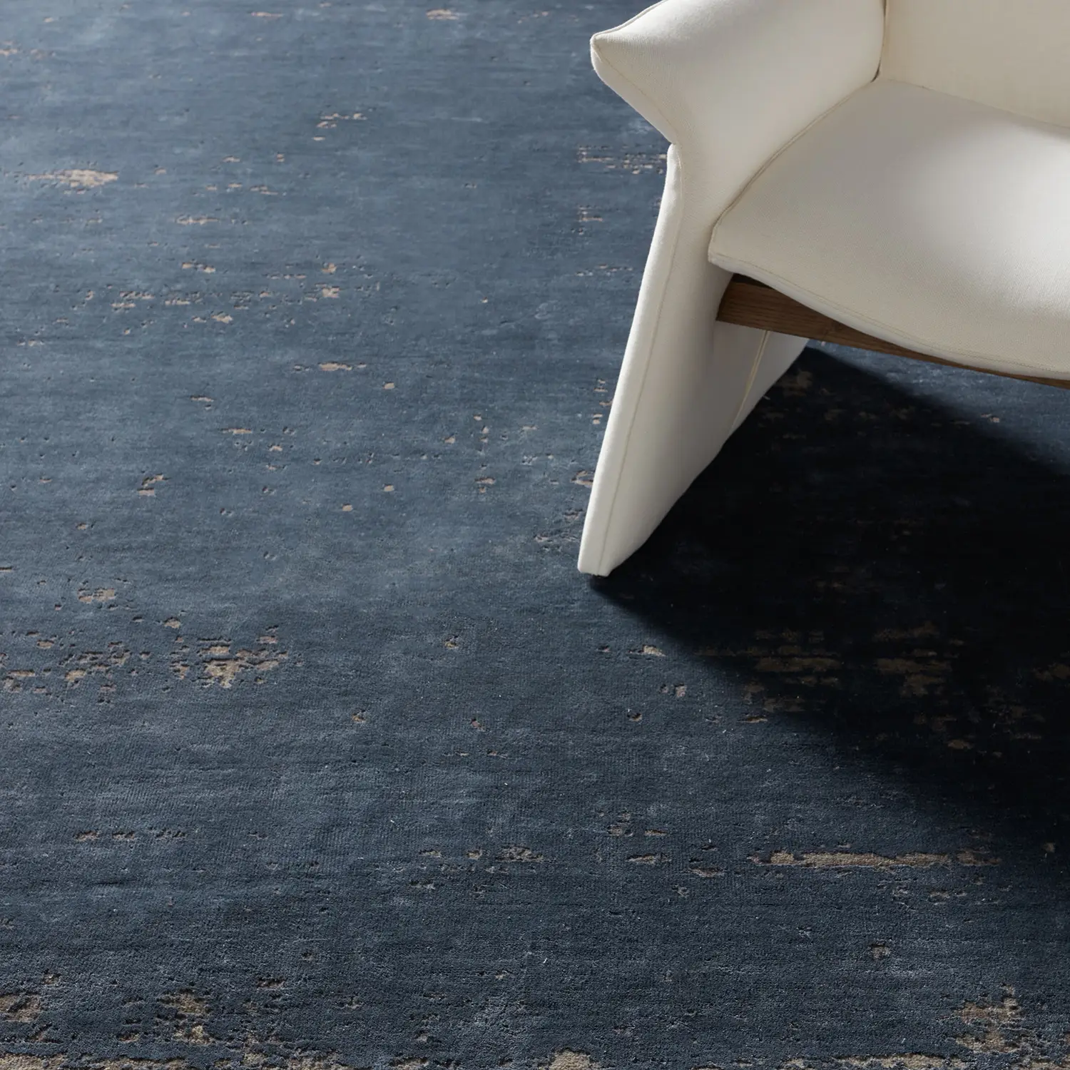 Inspired by the unrushed quality of the natural process, the UPKDIR collection features an assortment of grounding solid designs that are anything but basic. Rayon made from bamboo lends an inviting, silk-like texture and unique light-to-dark effect to the hand-knotted quality. The rug showcases a lustrous sea blue color that is grounded by the naturally textured, charcoal and warm gray wool fibers, creating a distinct shine and matte combination.
