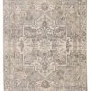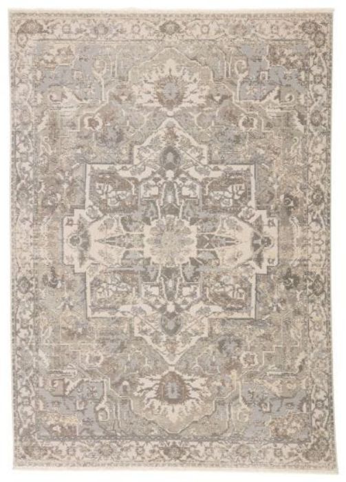 Showcasing the on-trend blanc de blanc look for an effortless and luxuriously vintage statement. This rug boasts a subtly distressed center medallion motif in tonal hues of cream, silver, cool gray, and light taupe. Soft and lustrous, this chameleon-like design emulates the timeless style of a Turkish hand-knotted rug, but in an accessible polyester and viscose power-loomed quality.