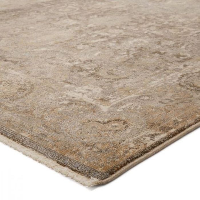 Showcasing the on-trend blanc de blanc look for an effortless and luxuriously vintage statement. This rug boasts a distressed floral medallion motif in warm tones of cream, gold, and taupe with cooler accents of metallic silver and gray. Soft and lustrous, this chameleon-like design emulates the timeless style of a Turkish hand-knotted rug, but in an accessible polyester and viscose power-loomed quality.