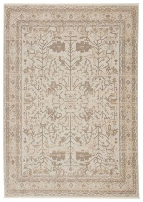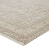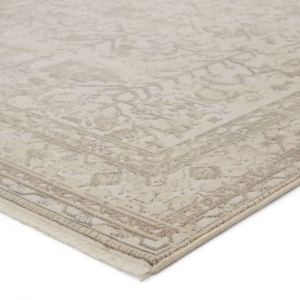 Showcasing the on-trend blanc de blanc look for an effortless and luxuriously vintage statement. This rug boasts a subtly distressed botanical motif in light tones of cream, taupe, and light gray, with accents of metallic silver and gold. Soft and lustrous, this chameleon-like design emulates the timeless style of a Turkish hand-knotted rug, but in an accessible polyester and viscose power-loomed quality.