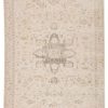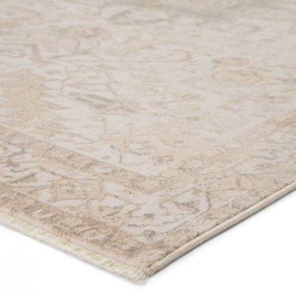 Showcasing the on-trend blanc de blanc look for an effortless and luxuriously vintage statement. This rug boasts a subtly distressed center medallion motif in light tones of cream, ivory, and light gray, with accents of metallic silver and gold. Soft and lustrous, this chameleon-like design emulates the timeless style of a Turkish hand-knotted rug, but in an accessible polyester and viscose power-loomed quality.