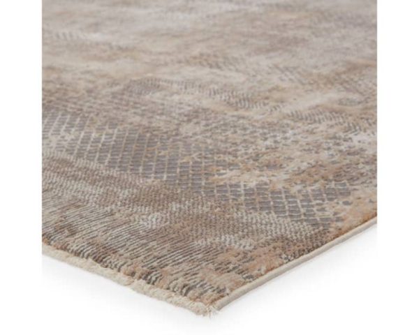 Showcasing the on-trend blanc de blanc look for an effortless and luxuriously vintage statement. This rug boasts a distressed mosaic motif in warm tones of tan, gray, and taupe with accents of metallic gold and bronze. Soft and lustrous, this chameleon-like design emulates the timeless style of a Turkish hand-knotted rug, but in an accessible polyester and viscose power-loomed quality.