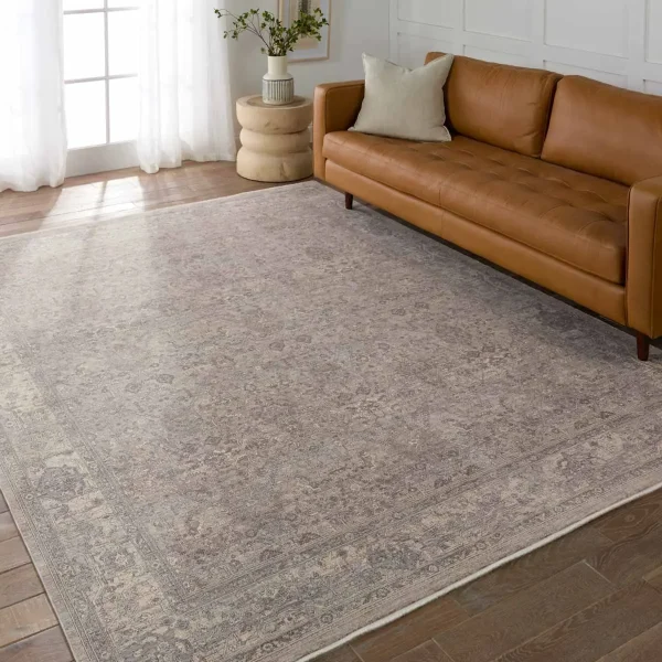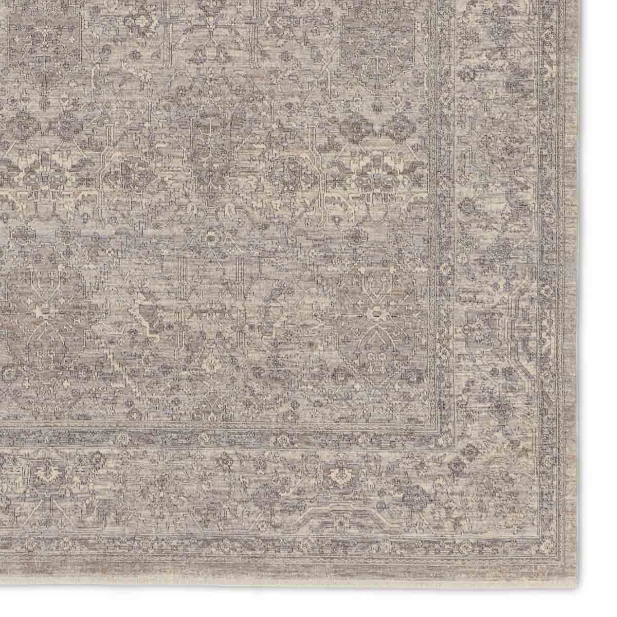 This intricate and finely detailed collection features 2 million-point patterns and stunningly ornate designs. This rug boasts a captivating traditional motif in cool tones of gray, taupe, beige, and silver.  Unique dimension and texture combine with the luxuriously soft hand of polyester and acrylic to emulate a hand-knotted quality and feel. This accent piece thrives in medium to low traffic spaces such as bedrooms, formal dining spaces, and formal living rooms.