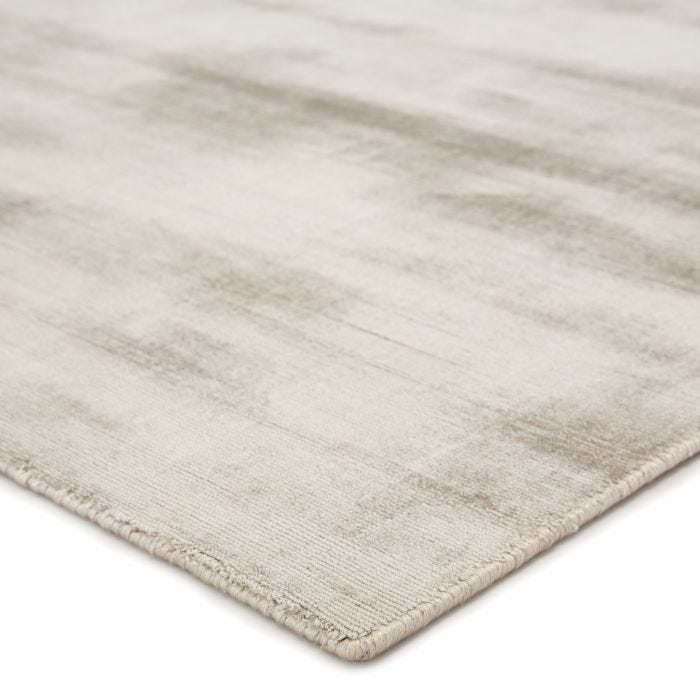 Effortless luxury defines this alluring and stunningly soft hand-loomed viscose area rug. The perfect accent for a glamorous bedroom, this solid silver layer boasts a dazzling luster and artistically distressed design.